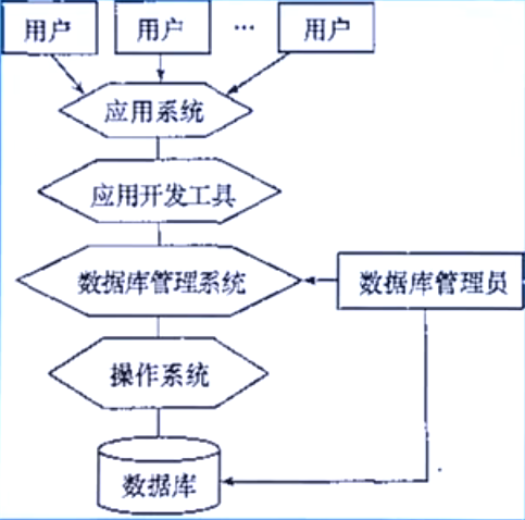 (4) 数据库系统(DataBase System, DBS):一般由DB、DBMS、应用系统和数据库管理员构成。